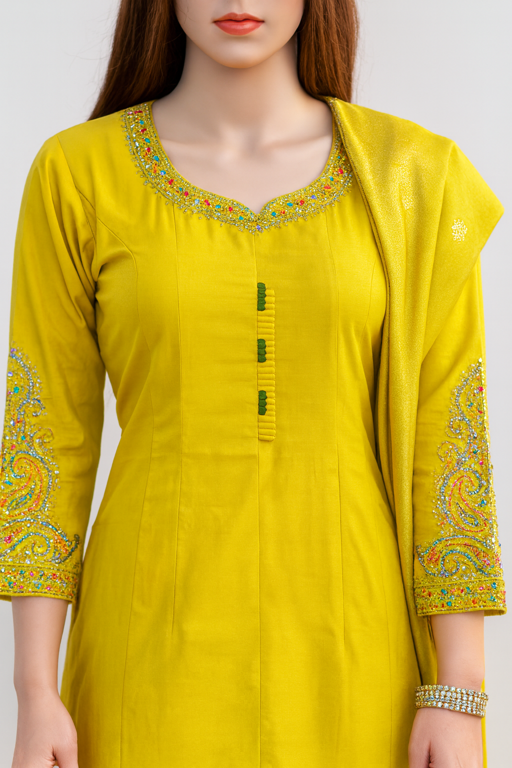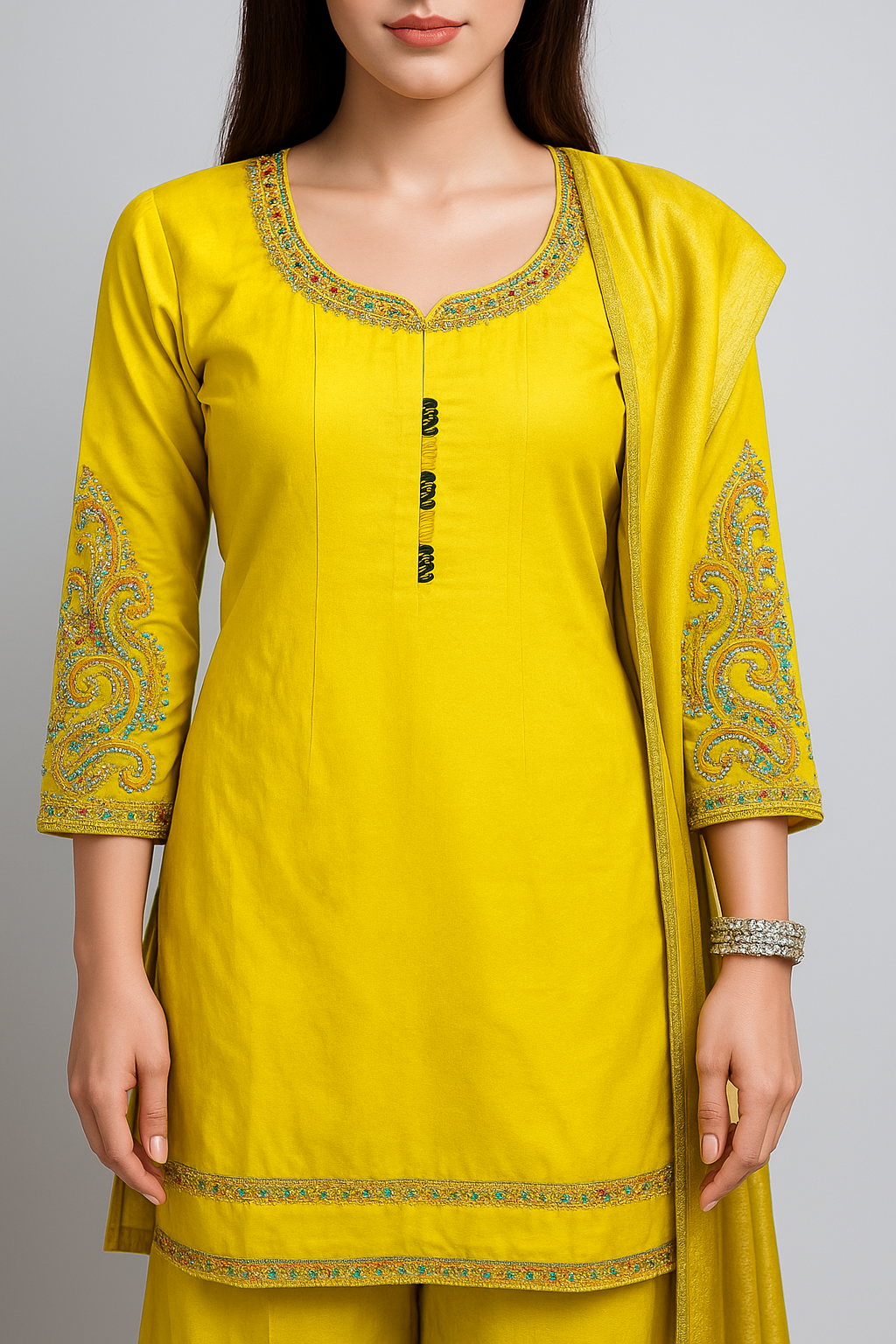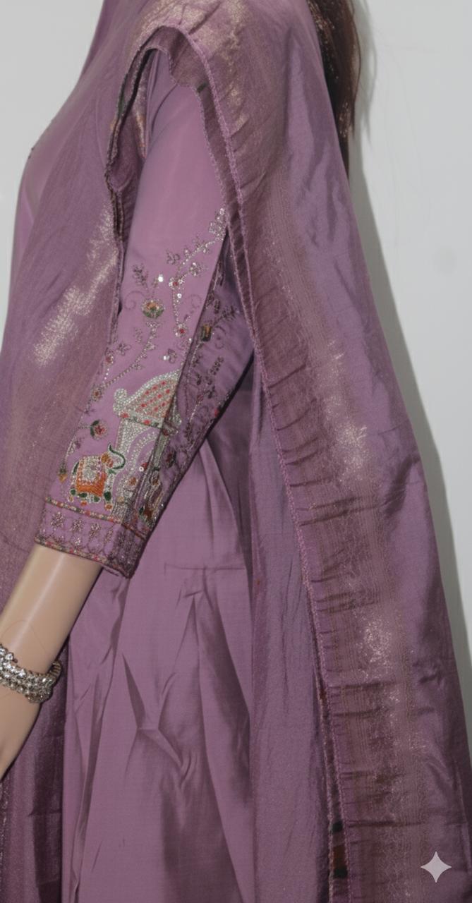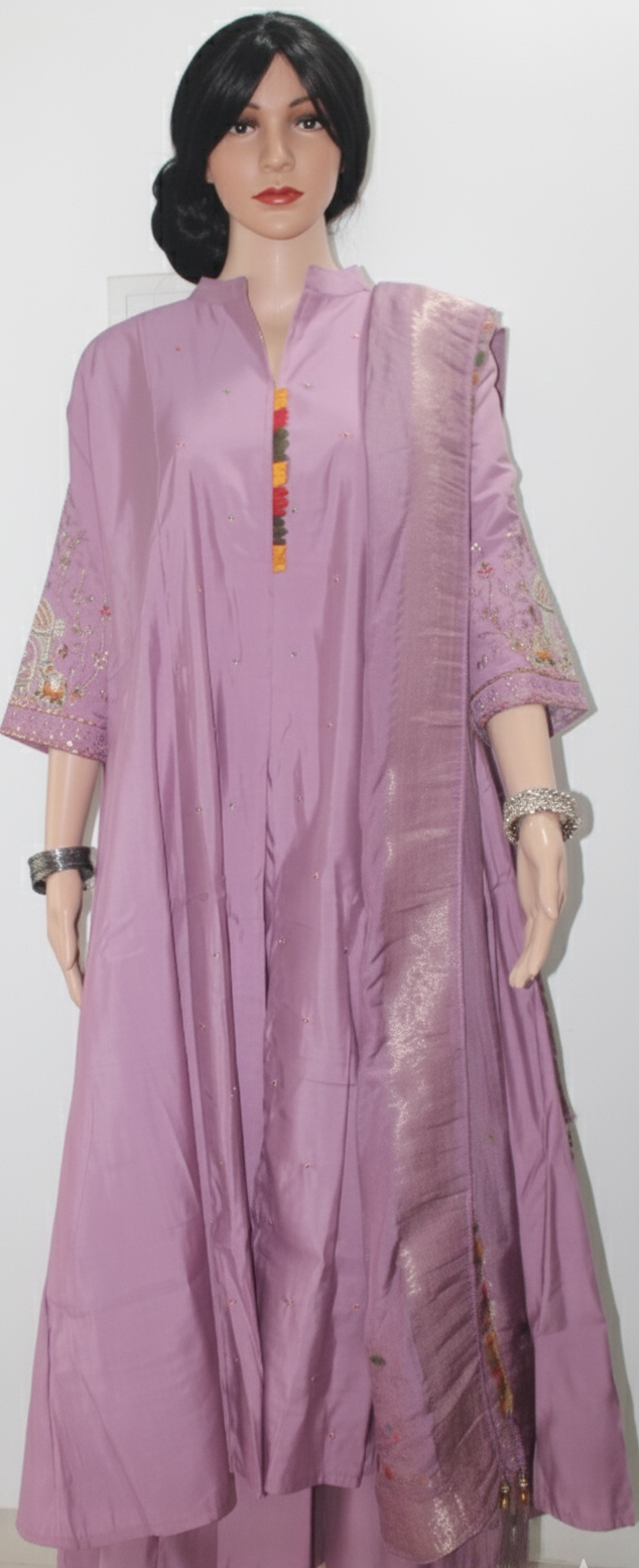 Pure Roman silk centre cut suit with palazzo pants and banarasi dupatta