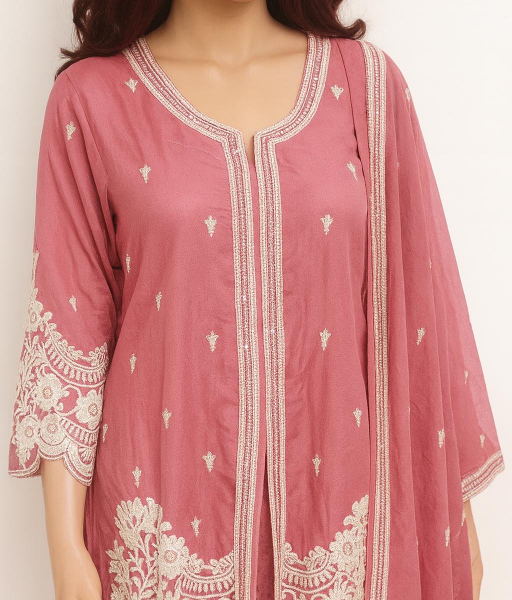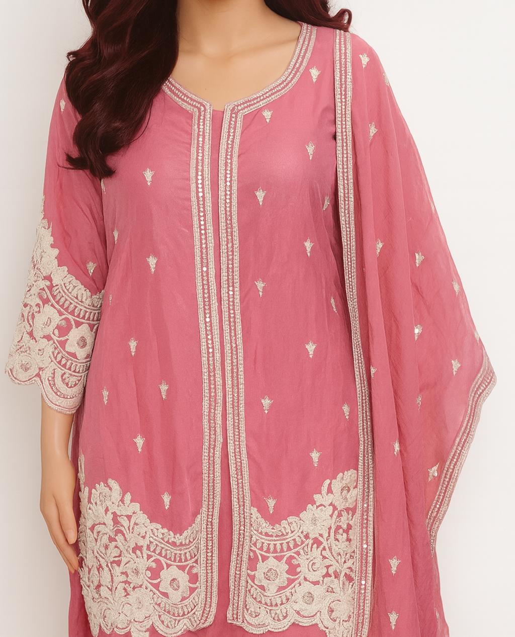 Short Peplum Crop Top Roman silk & sleeve work with palazzo pant
