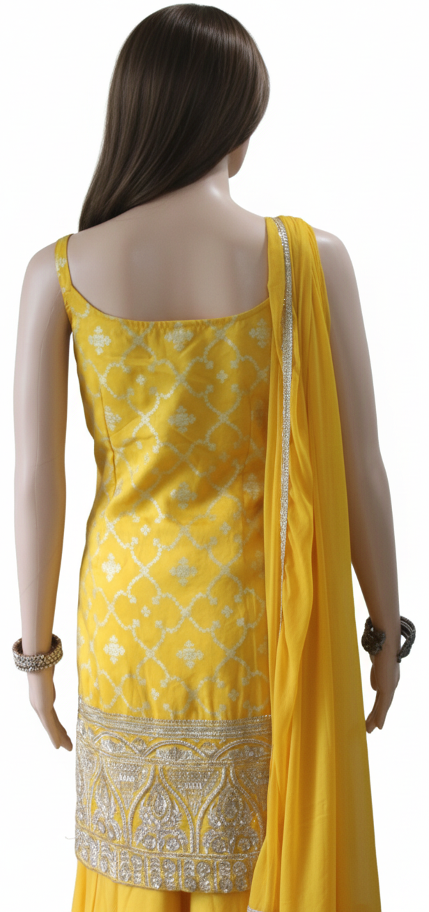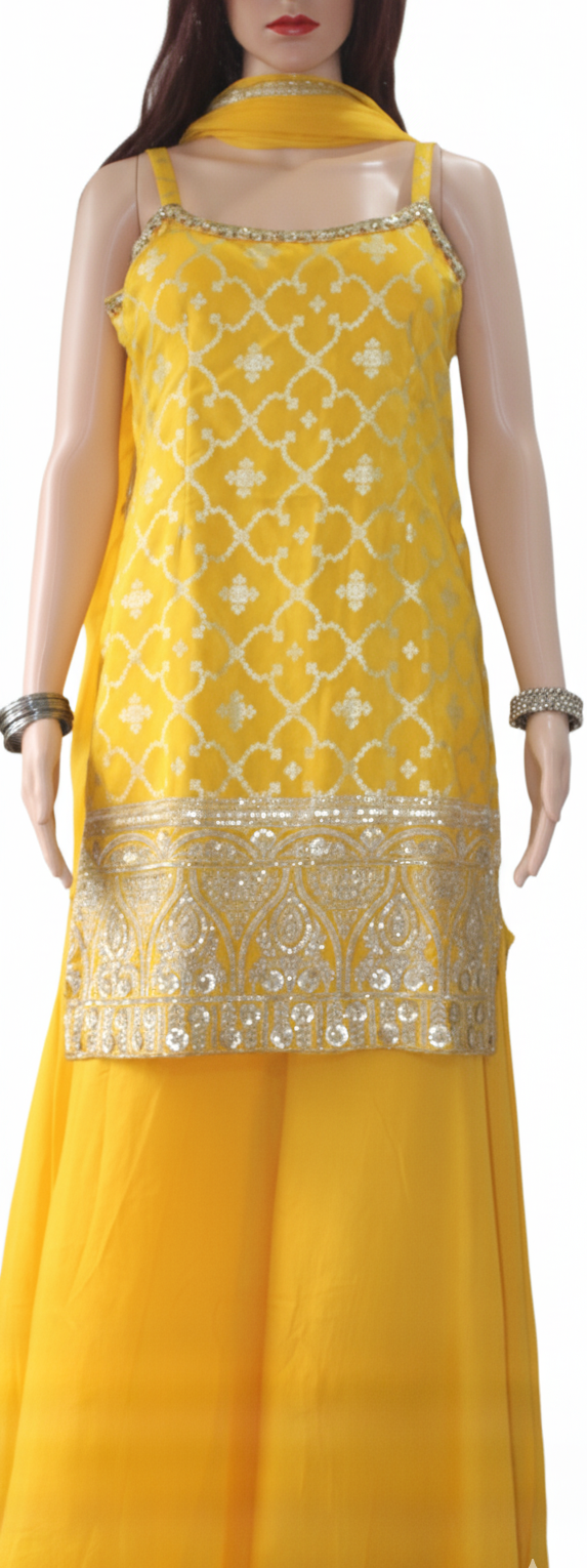Be the first to review “Spaghetti Banarasi top with skirt palazzo”