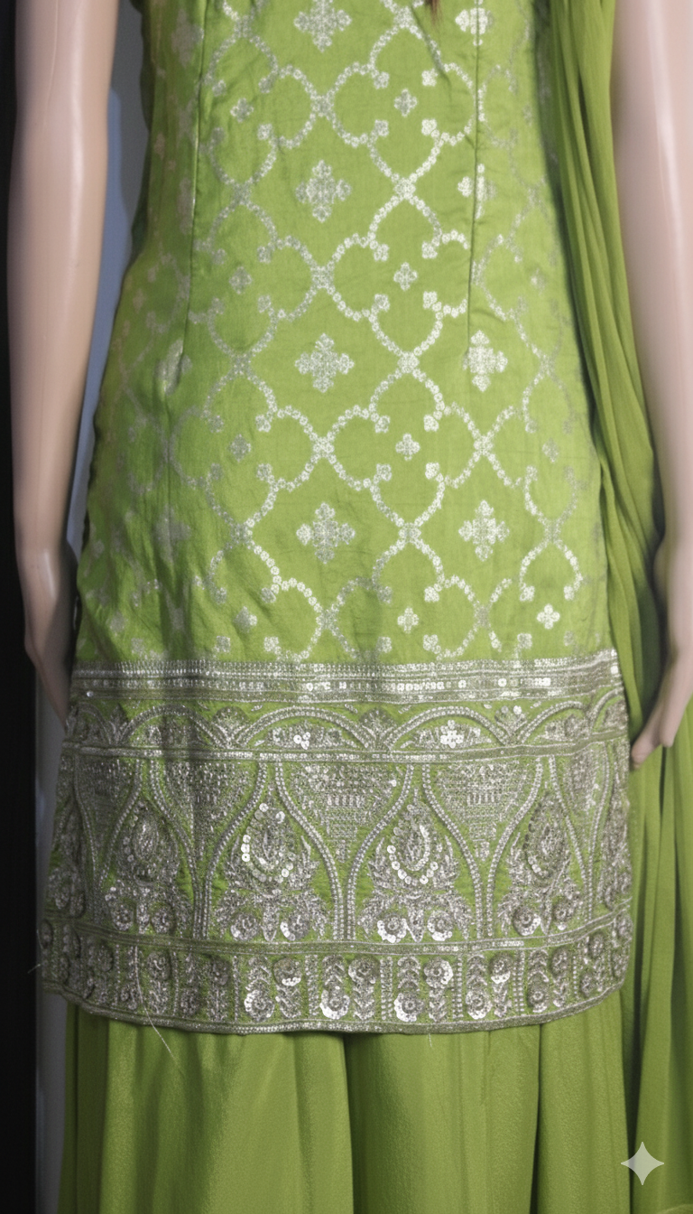 Be the first to review “Spaghetti Banarasi top with skirt palazzo”